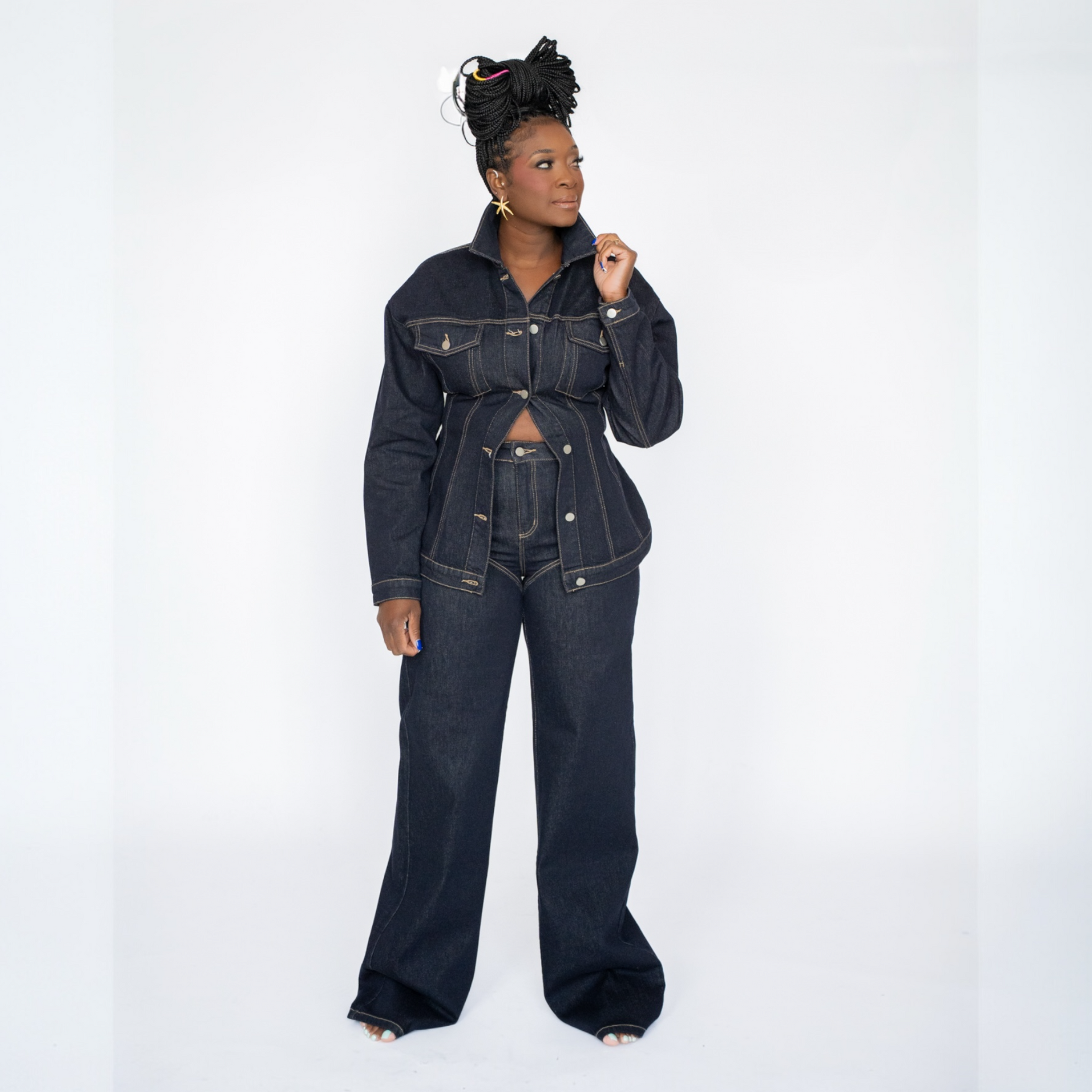 The dark indigo wash and contrast stitching add refined edge, while silver hardware keeps it sleek. Wear it solo as a top or layered as a jacket — either way, it’s the statement piece your denim collection’s been waiting for.