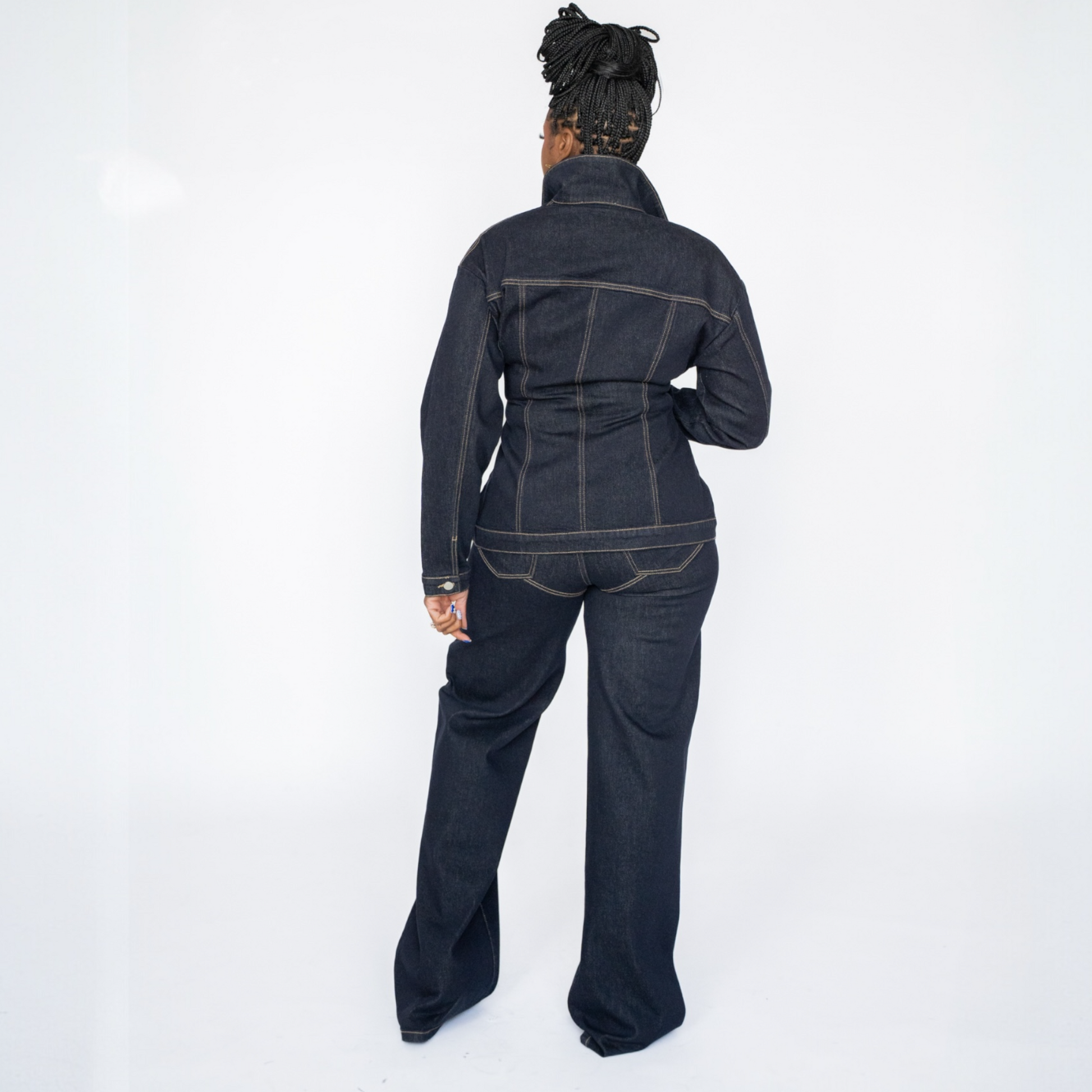 Structured and sculpting in all the right places the Contour Seam Denim Pants are a modern twist on classic dark wash jeans. Designed with a flattering high-rise waist and signature V-shaped seam detailing that accentuates your curves, these jeans redefine “tailored denim.”
